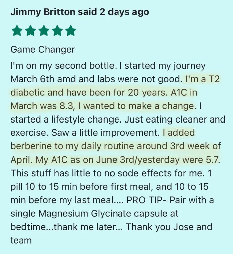 Most people will notice improvements in blood sugar control, reduced cravings, and increased energy within 2-3 weeks of consistent use. Individual results can vary, but taking Berberine daily as recommended will optimize your benefits.
